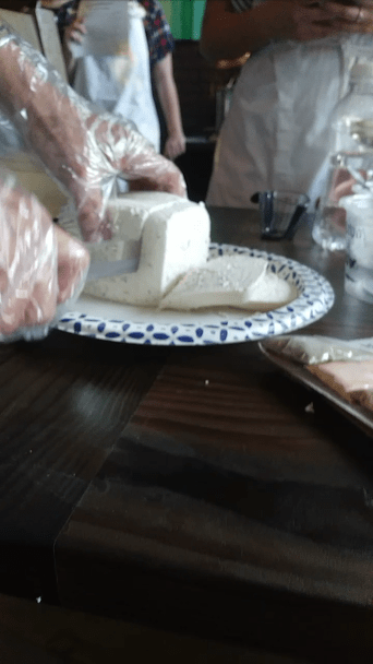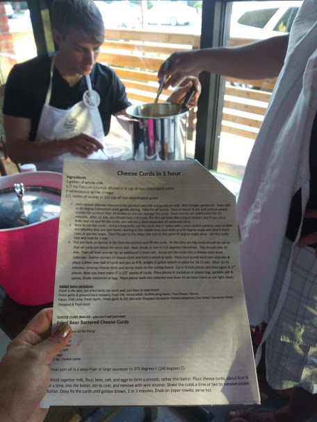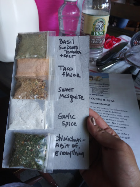 This class is a beginner level class that will teach you to make a quick cheddar style cheese curds within 1 hour and get them ready for any sporting event that day. During our class session we grouped up into 4’s. Teamwork makes the Dream-work! We learned about the enzyme rennet, which is used in cheese making to aid in the protein separation of the milk and Annato, the plant that gives that cheese its yellow glow. We also experienced with a variety of flavor by adding different spices to the cheese curds. We got to take home samples of BOTH CHEESE, Feta and Cheddar Curds.