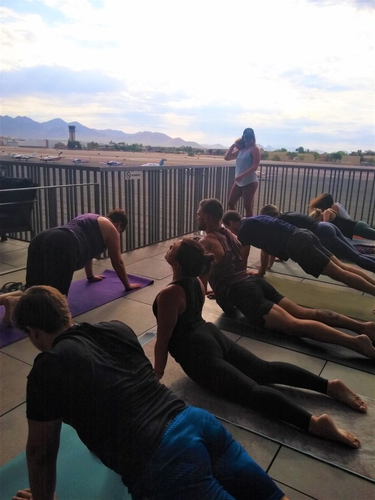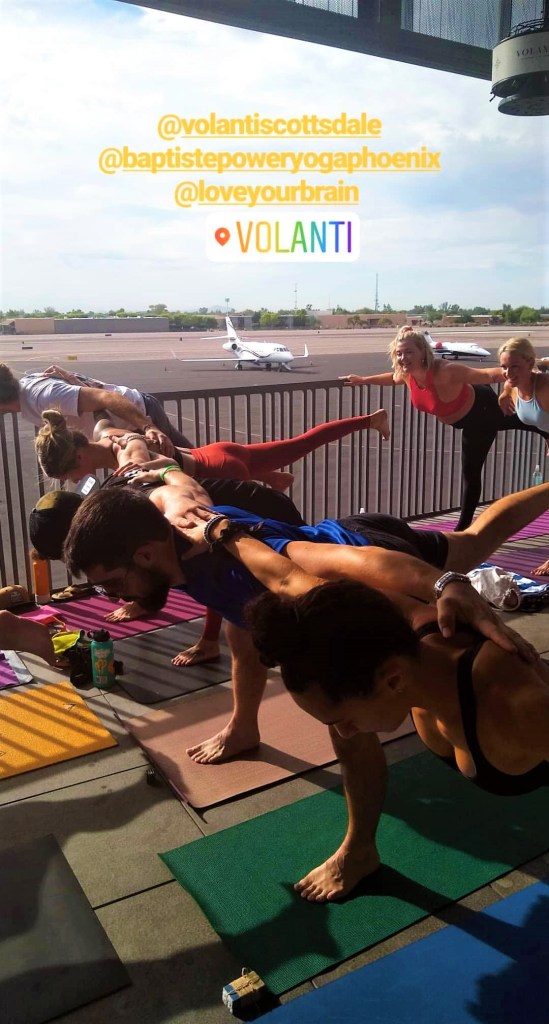 On a Saturday Morning, I attended #LoveYourBrain’s First Yoga Class at Volanti Scottsdale. Yoga and Mimosa’s! Yes Please!!