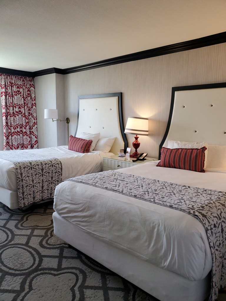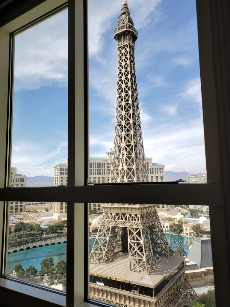 We checked into the Paris, Las Vegas Hotel and Casino for our stay. Paris Las Vegas is such a beautiful and lavish property. We felt extra special treating ourselves to a little luxury. With a complete sparkly replica of the Eiffel Tower in France, we enjoyed our complementary Birthday Upgrade to a Strip/Pool View.