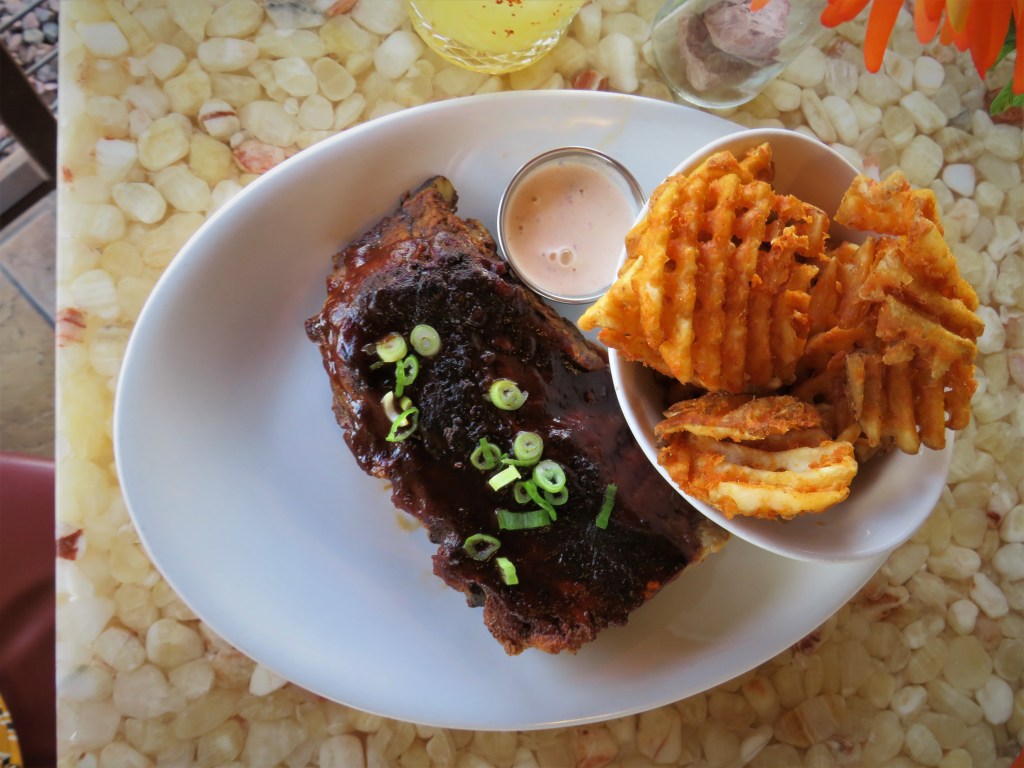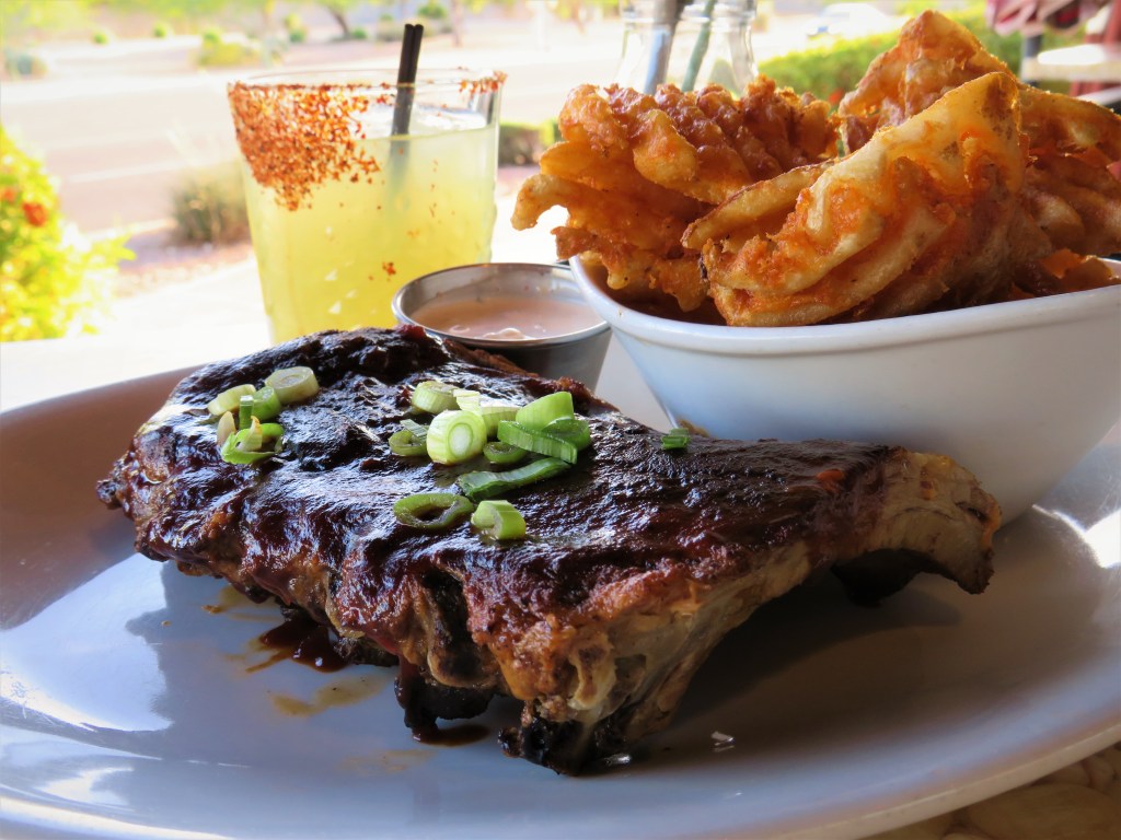 Pork ribs roasted to fork tender. Finished with house made root beer BBQ. Choice of side. Half Rack | 20