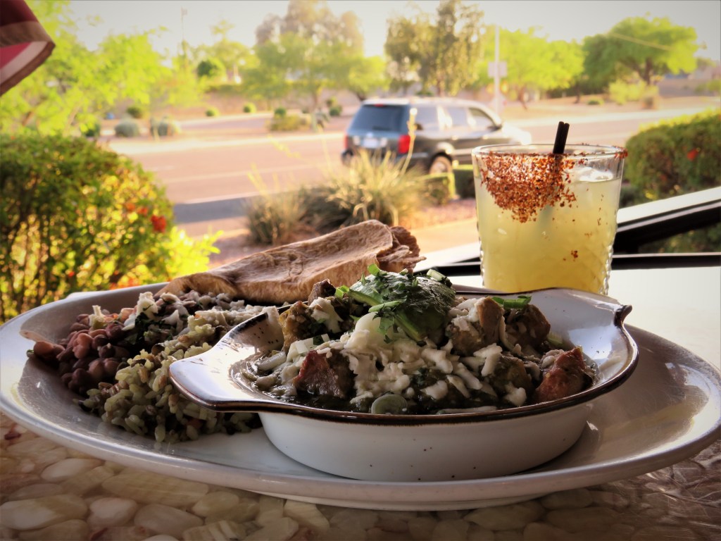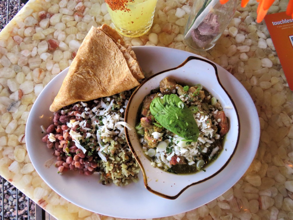 House stewed green chili pork, queso fresco, avocado & green onion. Served with grains, warm bean salsa & chipotle tortilla | 15