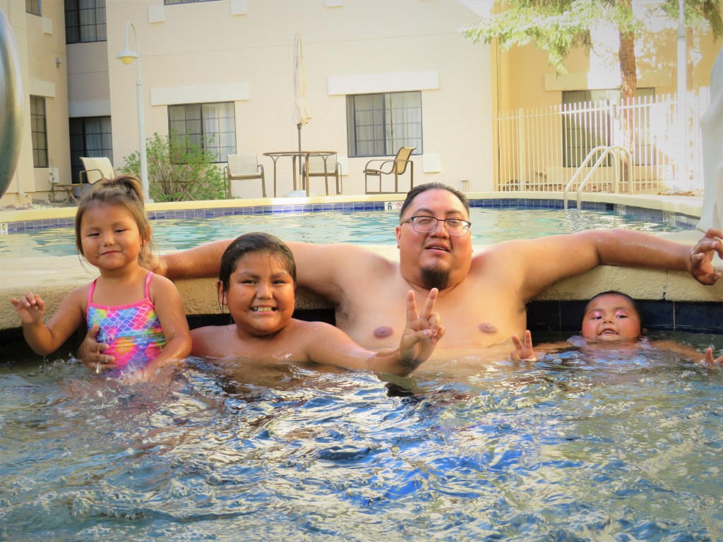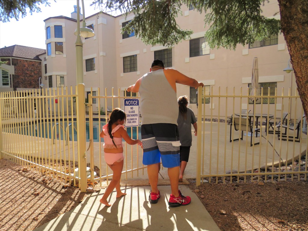 The kiddos we’re excited to check-into the hotel for a swim, so our trip was cut short in Sedona. Mariah couldn’t wait. Look at her face….