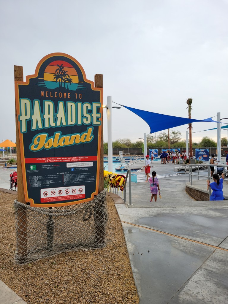 The all-new Paradise Island features a 12,000-square-foot activity pool with over a quarter of a million gallons of clear, blue water to keep guests cool under the hot, Phoenix sun with a zero-depth entry for little ones.