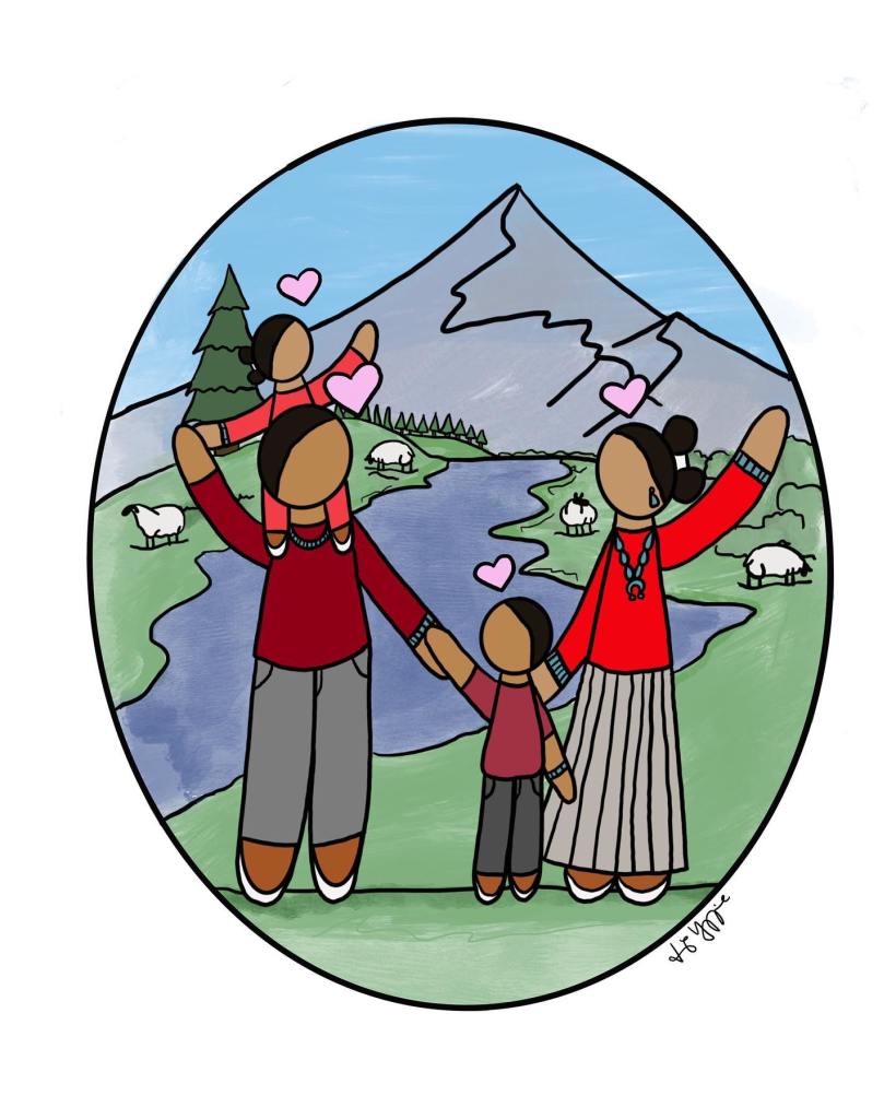 Deonoveigh is Tl’aashchi’i (Red Bottom People-mother), born for Naahilii (African American-father), her cheii is T’abaahi (Maternal grandfather is Water’s Edge) and her nali is Naahilii (Paternal grandfather is African American). She is originally from the heart of the Navajo Nation; Chinle, AZ.