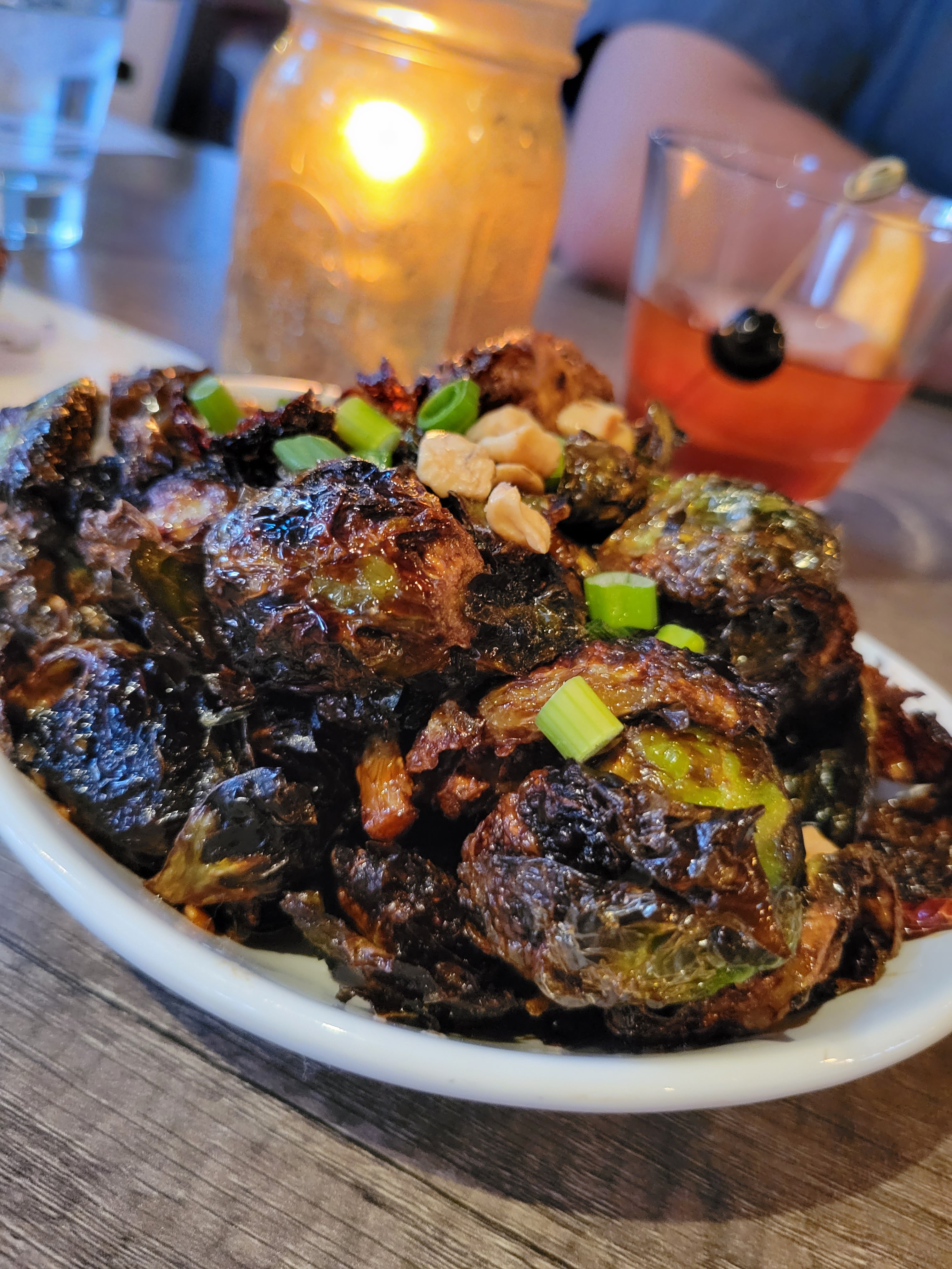 Crispy Brussel Sprouts, Peppers, Spicy House Kung Pow Sauce, Cashews, Scallions
