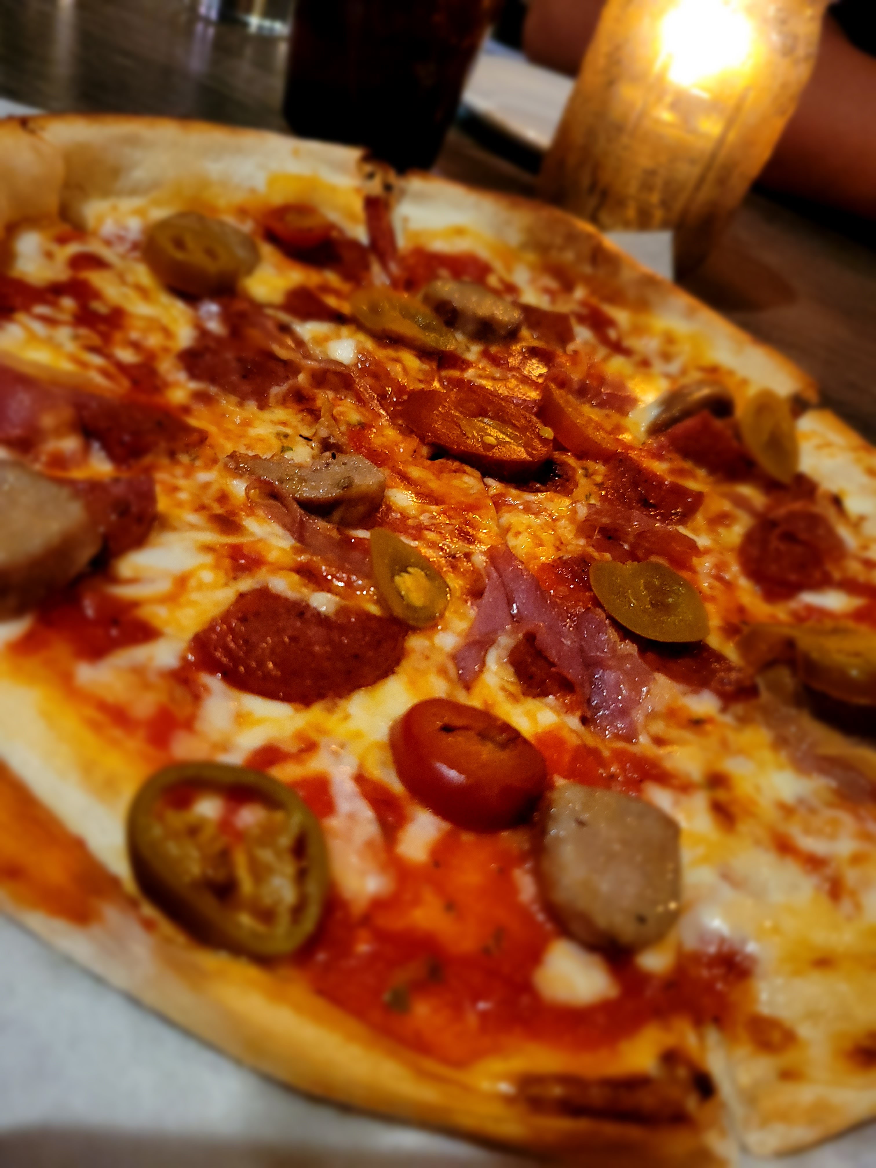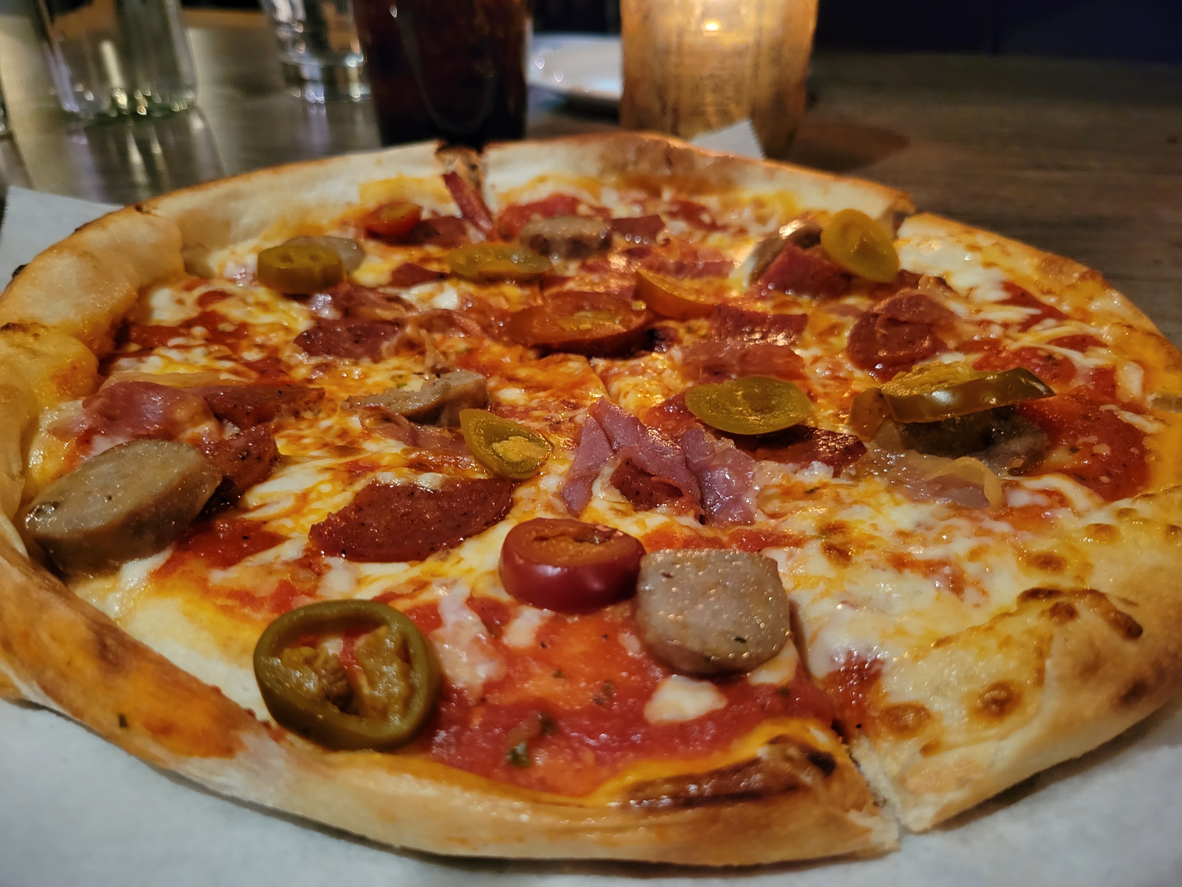 Made with Pepperoni, Sausage, Prosciutto, Cheese blend, Tomato sauce, and Mild Cherry Peppers