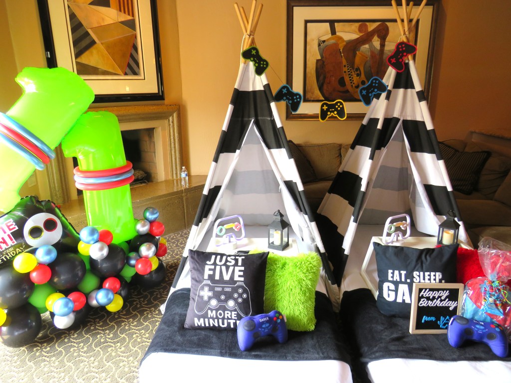 We had this fun Nintendo Balloon Tower done by our friends, AZ Sleepy Teepee Balloons. This cool number tower gave our party theme the POP it needed! It was delivered and set up just the way we wanted it.