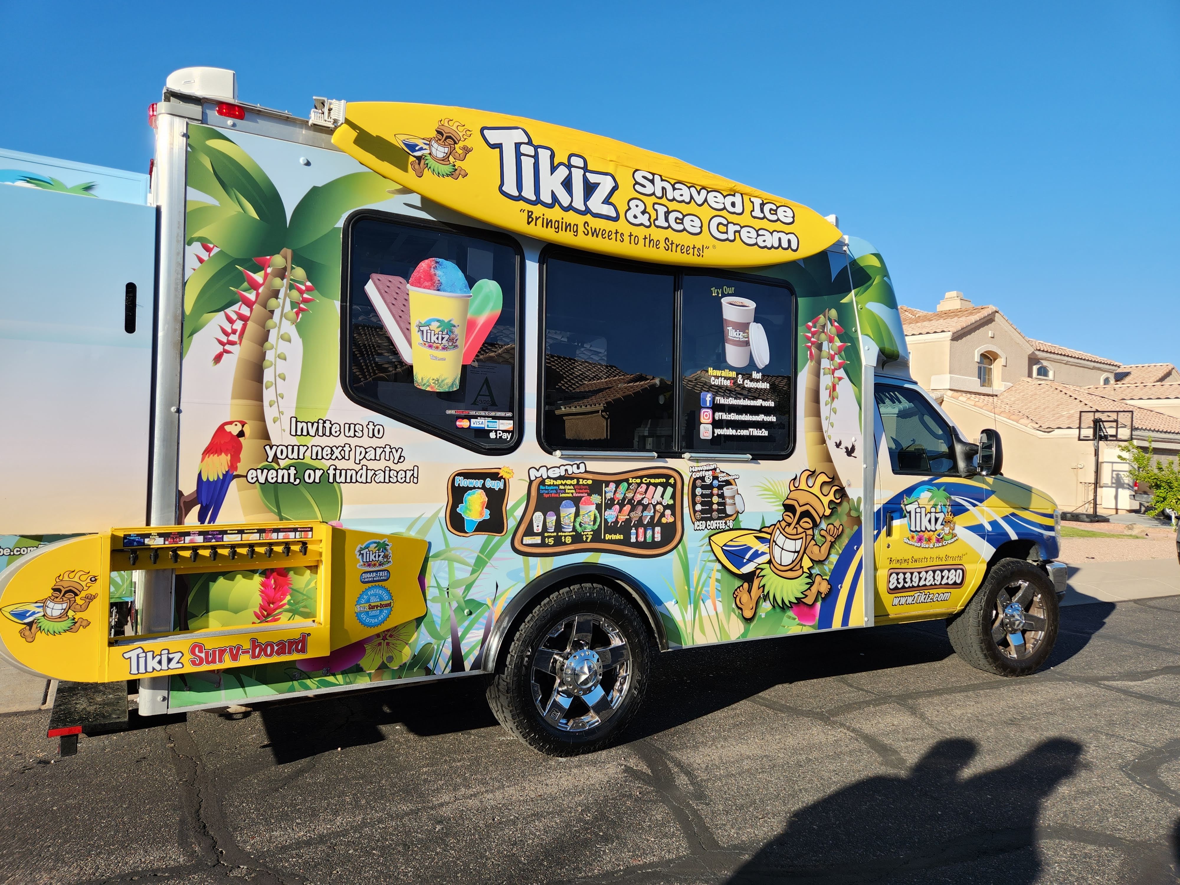 - A highly visible, Hawaiian beach-themed vehicle wrap.