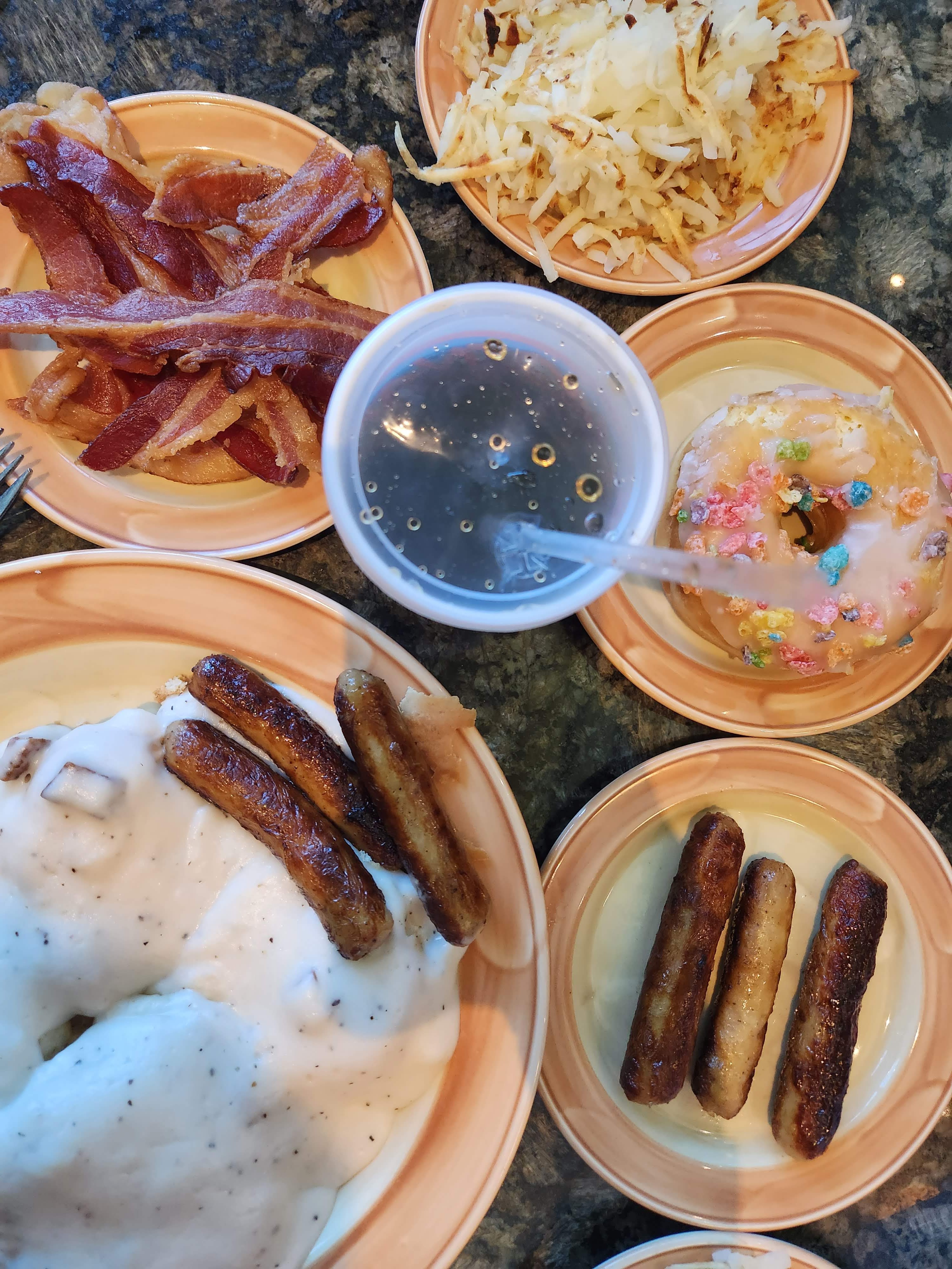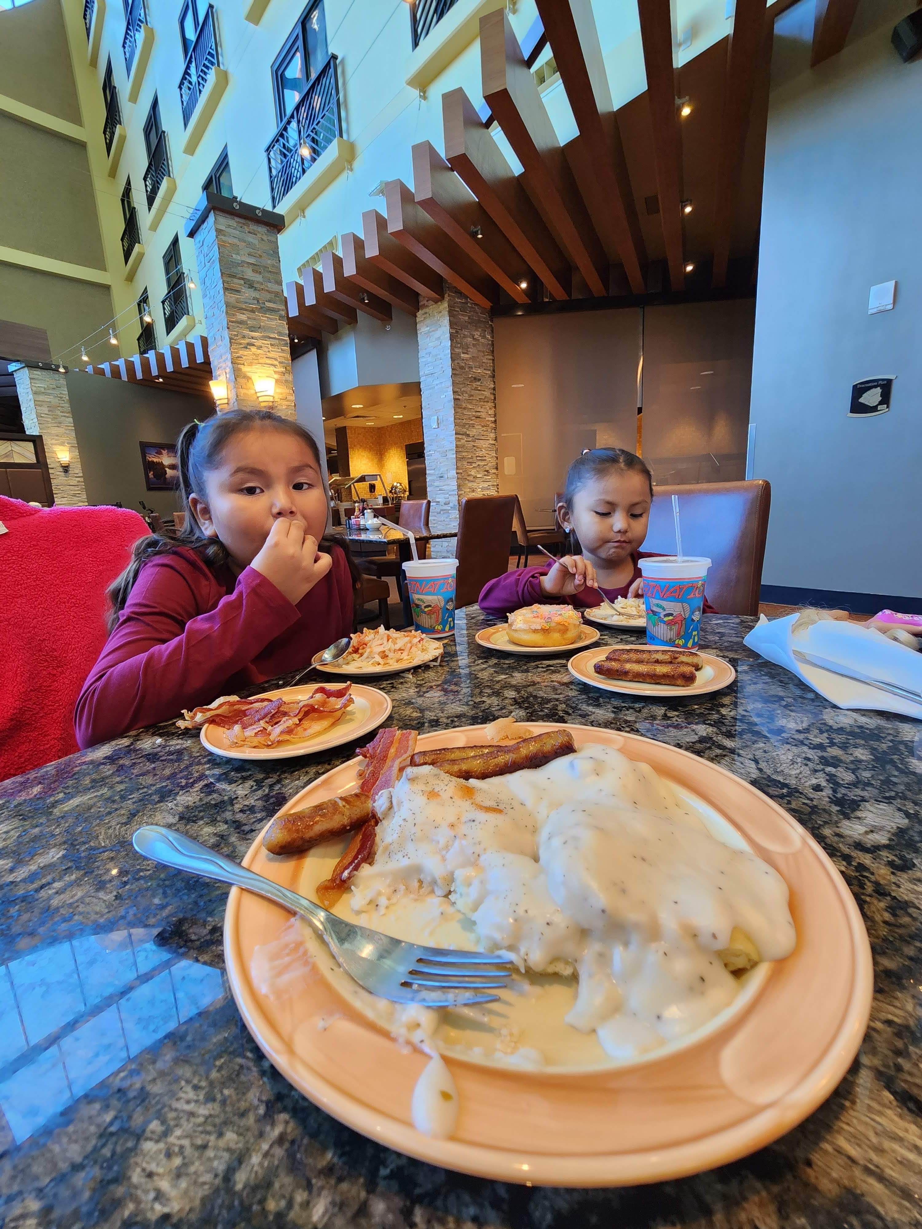 Mariah and Ariel loved their breakfast at Willows Cafe Bistro located on the main floor of the casino. Each morning they ordered the same thing. Cereal donuts with hashbrowns and bacon. I personally enjoyed the large portion size biscuit and gravy. Here’s the MENU for you to check out.
