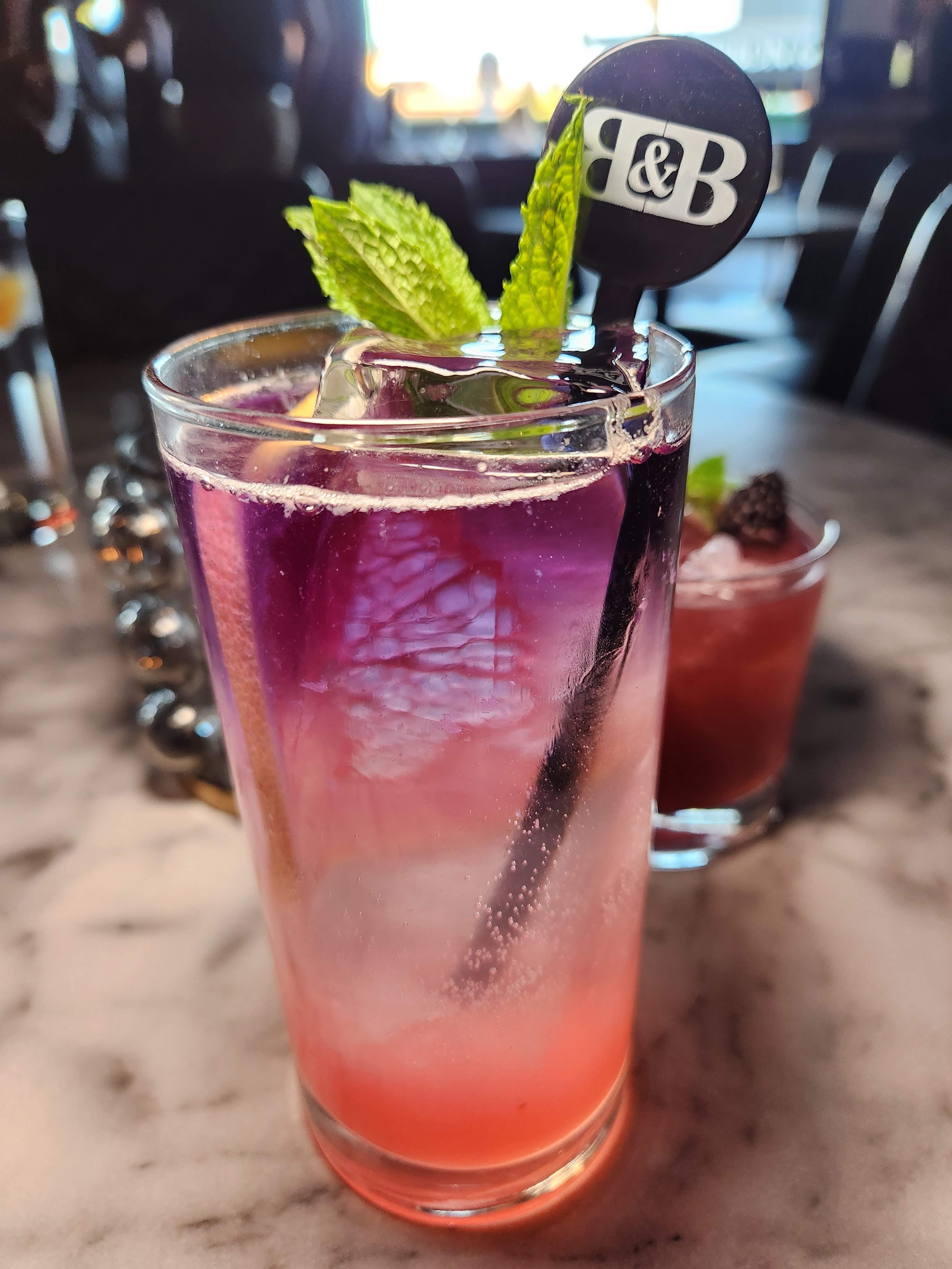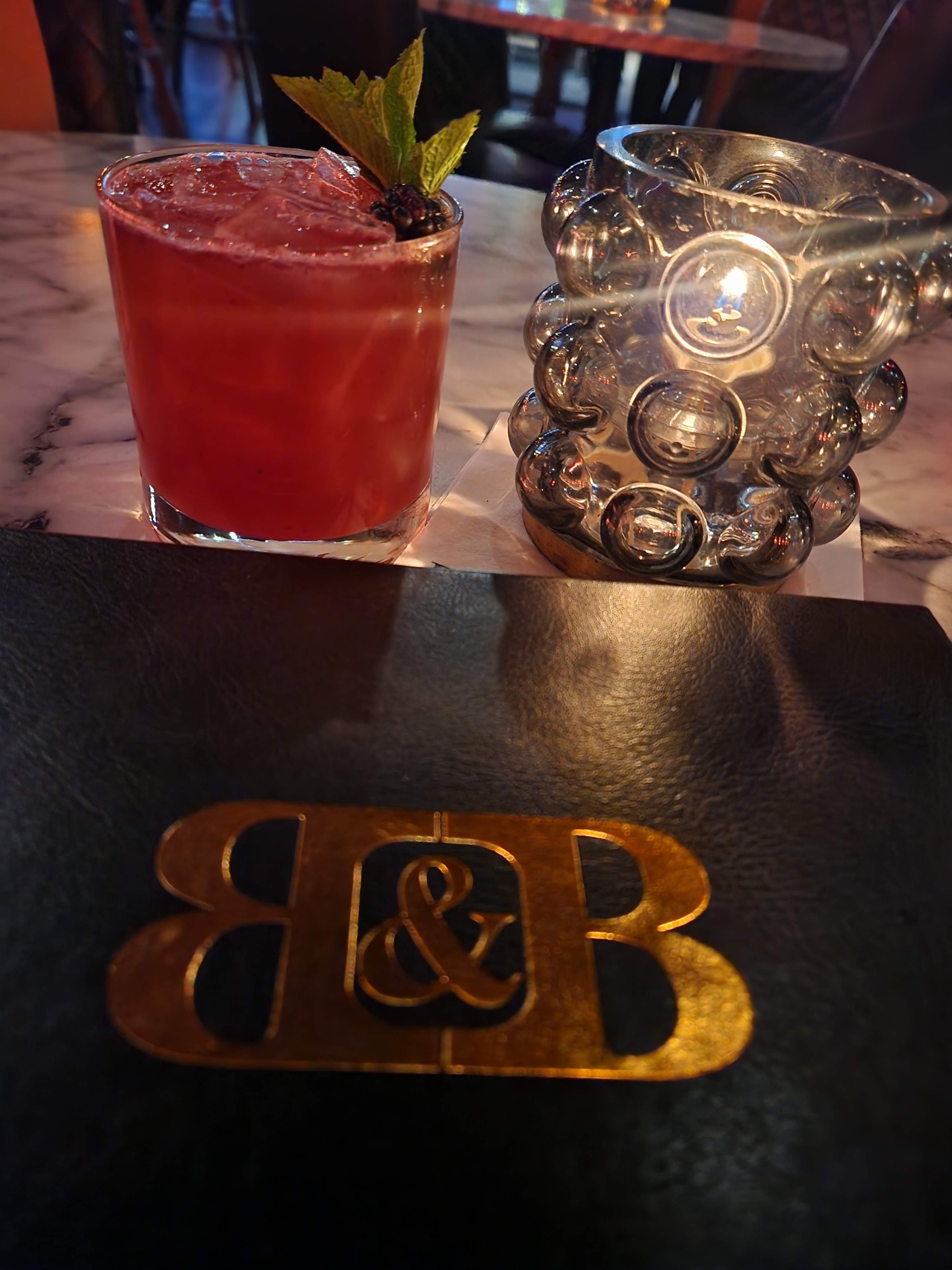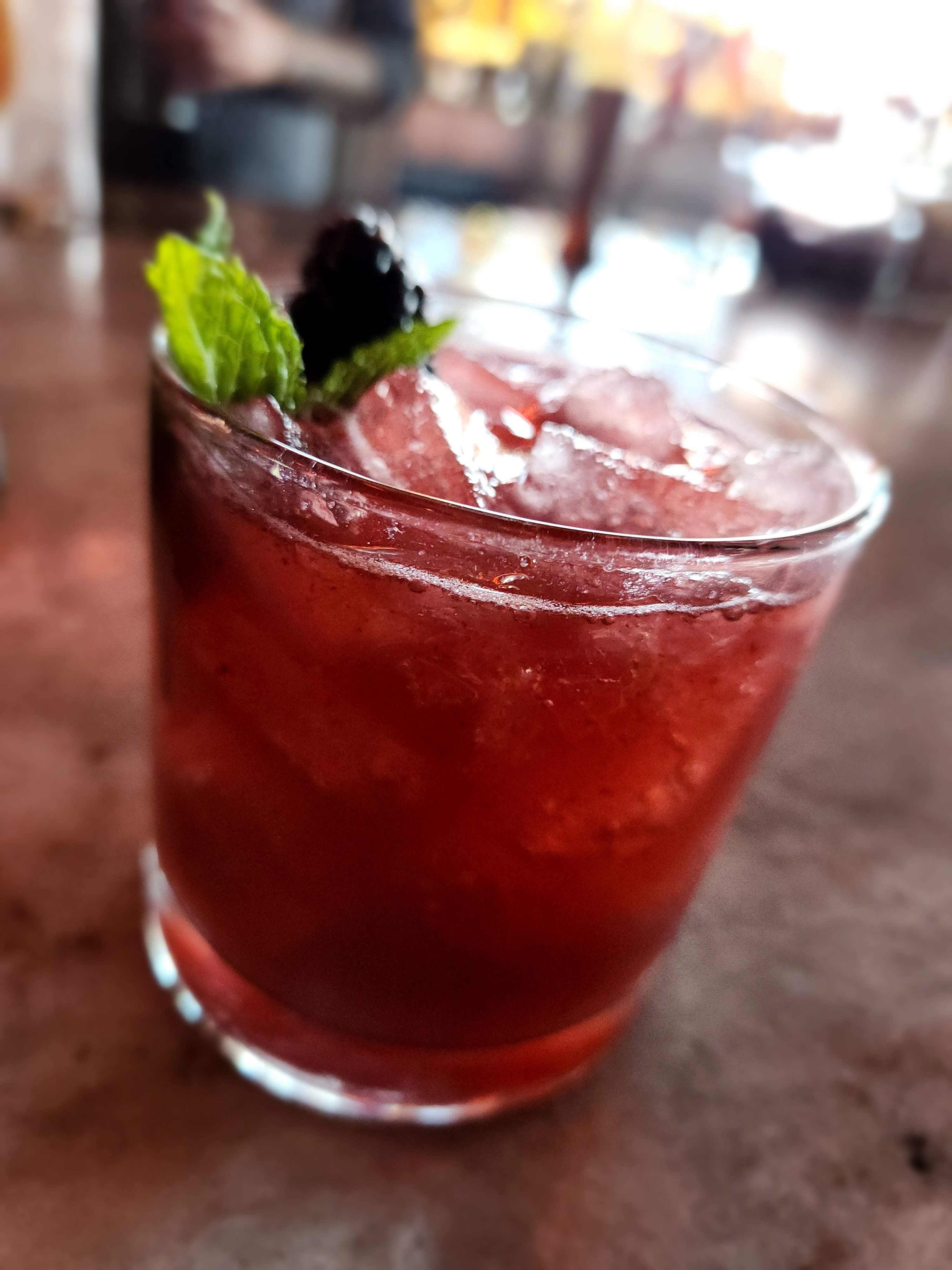 B&B Clyde Mayβs | blackberries | mint | lemon juice | simple syrup | muddled | rocks