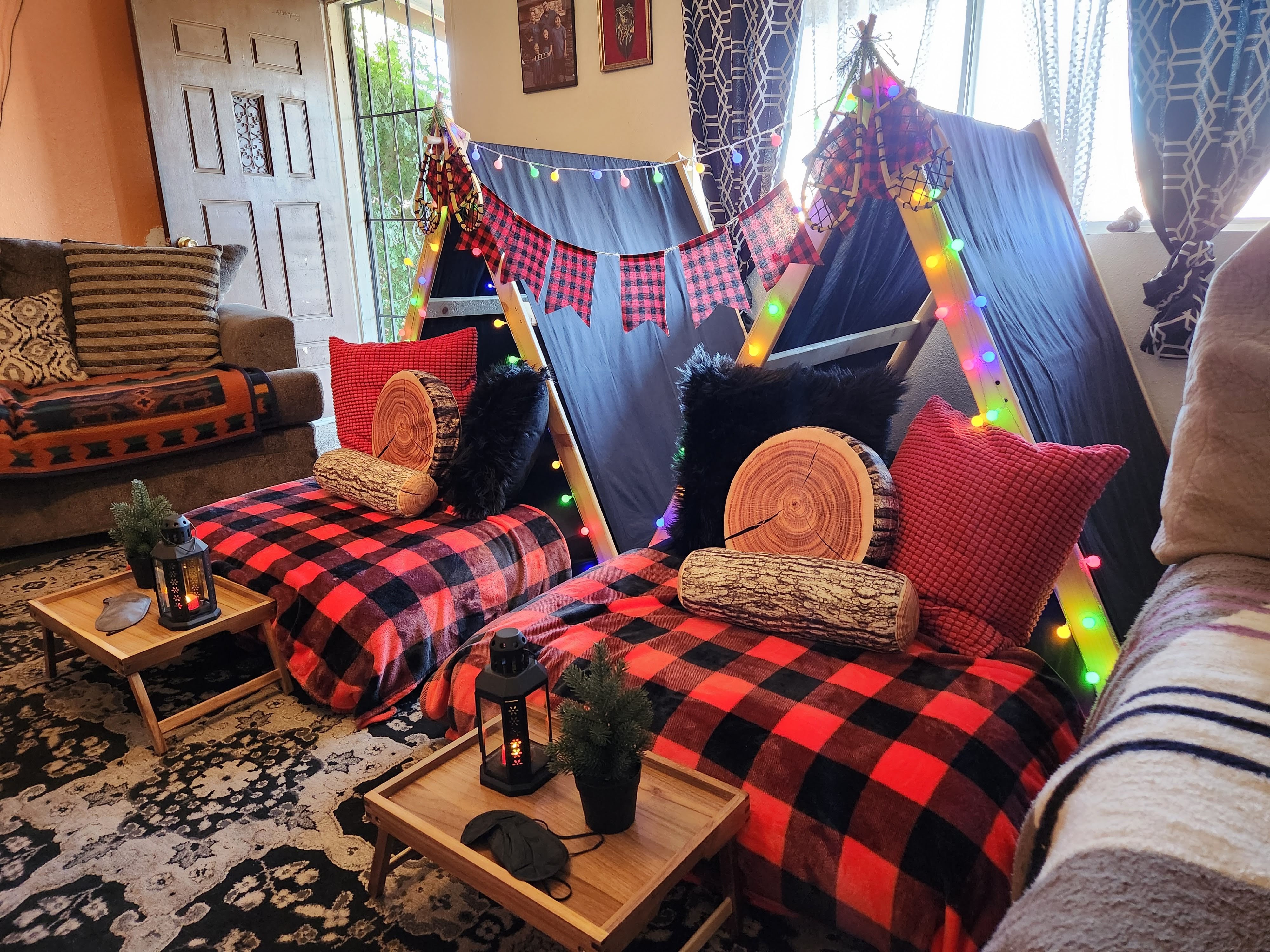 An Everyday Party will include a themed setup for each camper: tent, mattress, waterproof mattress pad, fitted sheets, blankets, pillows, accessories.