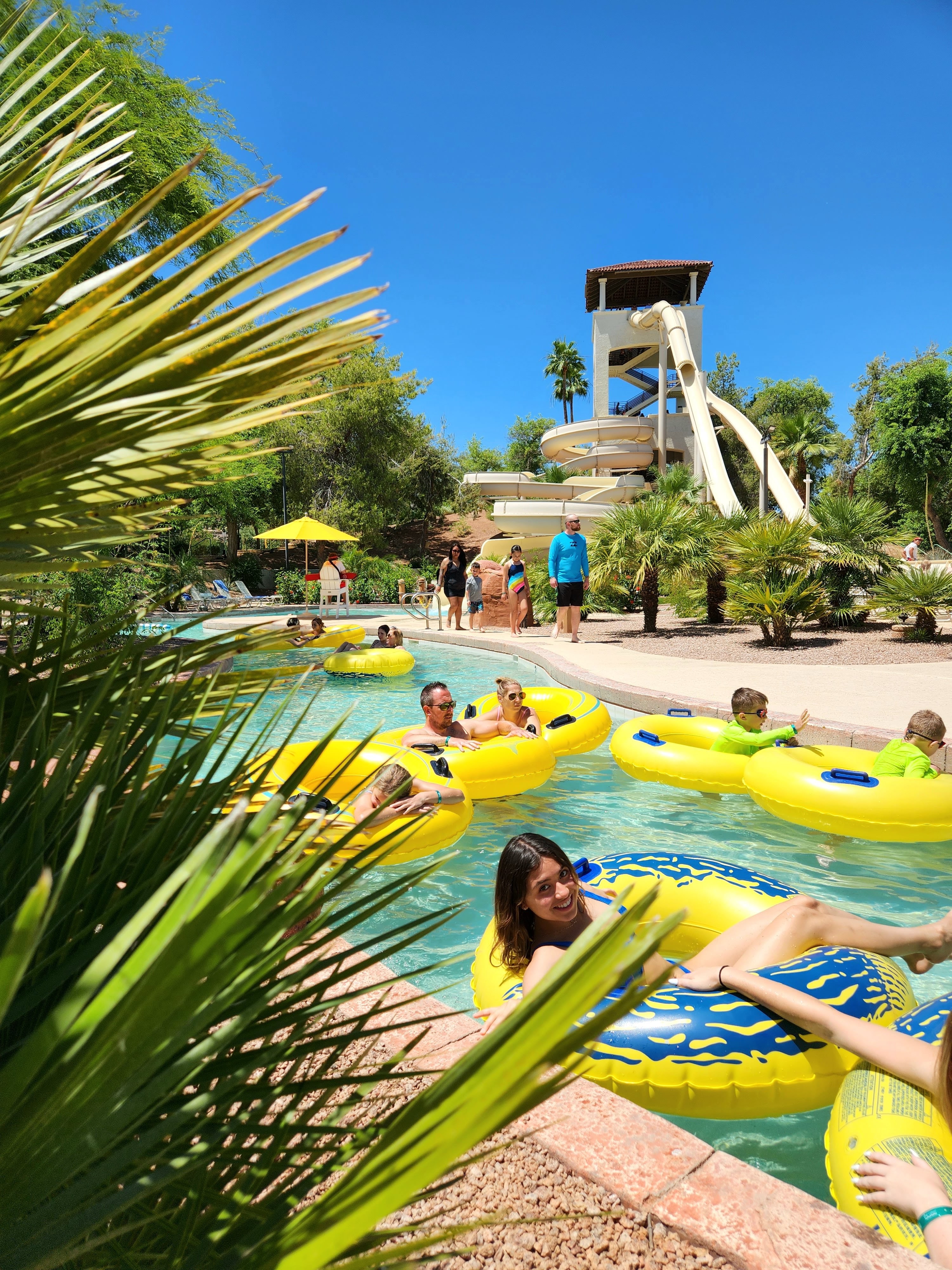 8 story water slide, lazy river, and family wave pool. Toddler splash pad included.